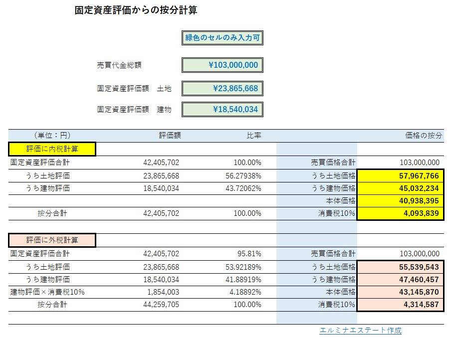 売買金額と土地と建物の固定資産評価額をいれるだけで、評価額に消費税を含むパターンと含まないパターンの計算が可能です。 LICレポートへの感想や、 お問合せ・ご意見をお聞かせください。 お待ちしています。 ご意見・ご感想はこちらから 発行者:株式会社エルアイシー 配信停止はお手数ですが 宛に「配信停止」のメールを |